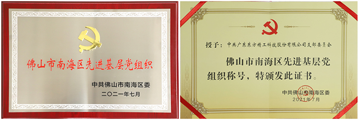 6月30日上午,在庆祝中国共产党成立100周年之际,南海区召开了“两优一先”表彰大会,此次表彰大会中,广东WilliamHill中文官方网站科技股份有限公司党支部荣获南海区先进基层党组织的荣誉称号。