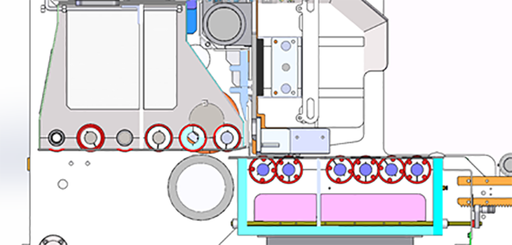 应市场需求,2022年我司正式推出了无损伤送纸系统的旧机技改项目,并成功应用在佛山某合作客户的TOPRA GD系列机器上。该系统取消送纸胶辊的传送方式,采用上下真空箱传送方式,保证纸板在完全不受送纸辊挤压及快速除尘的情况下,高速平稳地从前缘送纸平台传送到印刷单元。