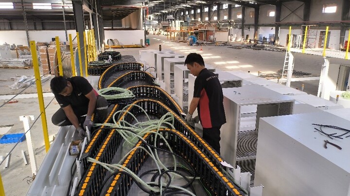 工程师调试粘箱机并培训人员操作使用。