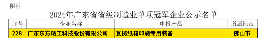 WilliamHill中文官方网站凭借“瓦楞纸箱印刷专用设备”荣膺“广东省制造业单项冠军企业”称号!