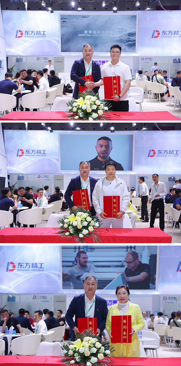 On the first day of the exhibition, Dongfang Precision's Printer Divison signed contracts. At 14:30pm, Mr. Deng Yongjie, General Manager of the Printing Machine Division of Dongfang Precision, signed purchase contracts with three companies.