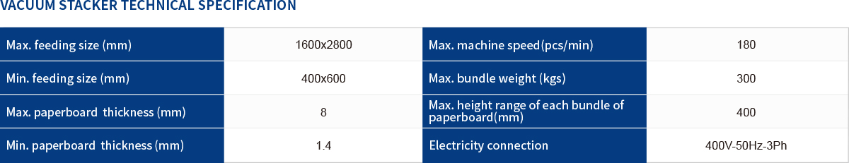 Advanced vacuum suction transfer and stacking technology from europe and USA